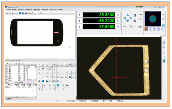 十一、實用強大的編程功能 1、支持一機編程多機使用; 2、支持元素重新測量,與其相關聯的構造、幾何運算、公差判定會自動更新,簡單省時高效; 3、可對程序的燈光、倍率、高度等進行快速修改; 4、程序陣列、平移、旋轉:對有規律的元素測量,只需測量一個,其余的可通過陣列、平移、旋轉來完成,省時高效; 5、同在一個屏幕下的元素,機器無需運動,一次性自動測完; 6、可自動判斷產品的NG/OK,并用顏色標識測量超差的位置;